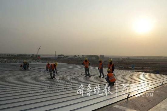 青島新機(jī)場(chǎng)航站樓,世界最大不銹鋼屋面單體開始拼裝